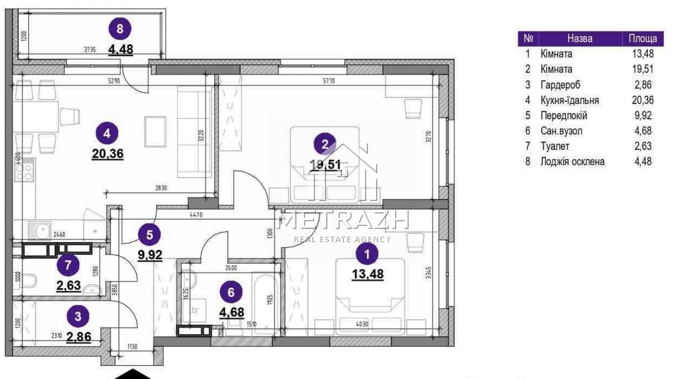 Кімнат: